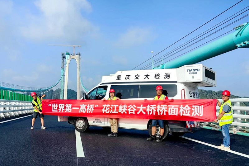 在此次挑戰(zhàn)世界之巔的檢測(cè)任務(wù)中,市建科院所屬重慶交大建設(shè)工程質(zhì)量檢測(cè)中心有限公司檢測(cè)團(tuán)隊(duì)將“檢測(cè)公正、服務(wù)及時(shí)、方法科學(xué)、誠(chéng)實(shí)守信、遵規(guī)守紀(jì)”的質(zhì)量方針貫穿于項(xiàng)目全生命周期,為大橋橋面檢測(cè)任務(wù)量身定制了科學(xué)周密、前瞻精準(zhǔn)的技術(shù)方案。在項(xiàng)目實(shí)施過(guò)程中,檢測(cè)團(tuán)隊(duì)?wèi){借深厚的技術(shù)實(shí)力攻克了因橋面超高、跨度極大帶來(lái)的系列“高精尖”檢測(cè)難題。他們對(duì)每一次檢測(cè)質(zhì)量嚴(yán)格把關(guān),讓檢測(cè)數(shù)據(jù)精準(zhǔn)、及時(shí)、科學(xué)地呈現(xiàn)在檢測(cè)報(bào)告上,確保了所有檢測(cè)指標(biāo)均符合大橋設(shè)定與行業(yè)規(guī)范。