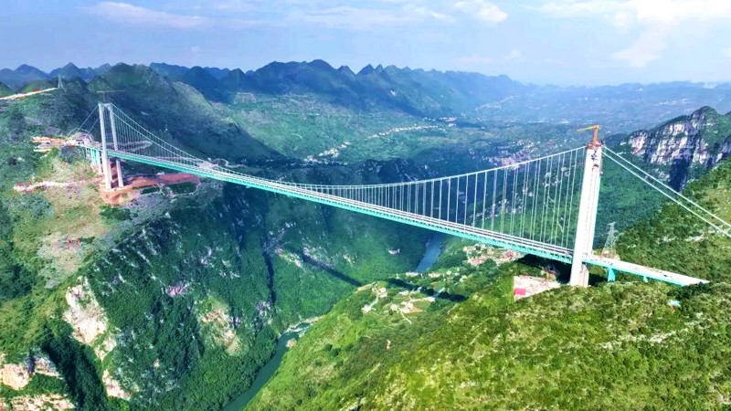 大橋以2890米的全長(zhǎng)、1420米的主橋跨徑,雄踞山區(qū)橋梁跨徑“世界第一”;更以橋面距水面625米的垂直高度,問(wèn)鼎全球橋梁“第一高度”。這座被網(wǎng)友稱(chēng)贊為“橫豎”皆創(chuàng)“世界第一”的超級(jí)工程,從藍(lán)圖變?yōu)楝F(xiàn)實(shí),對(duì)每一環(huán)節(jié)的質(zhì)量與精度都提出了極致要求。