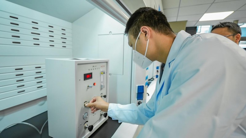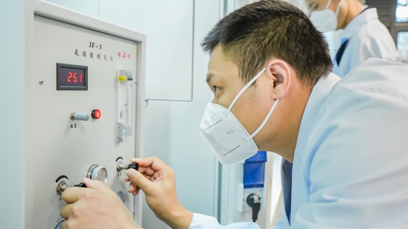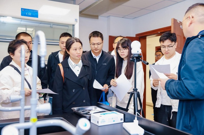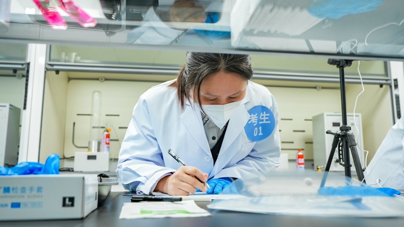 在決賽現(xiàn)場,理論考試結(jié)束,進入實驗環(huán)節(jié),以每6人一組進行分組比試,選手們嚴格按照標(biāo)準(zhǔn)對建筑保溫材料的氧指數(shù)進行檢測。李靖憑借熟練的操作手法一騎絕塵,贏得專業(yè)認可。
